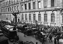 La foule devant la Banque de France lors de la crise monétaire de juillet 1914.